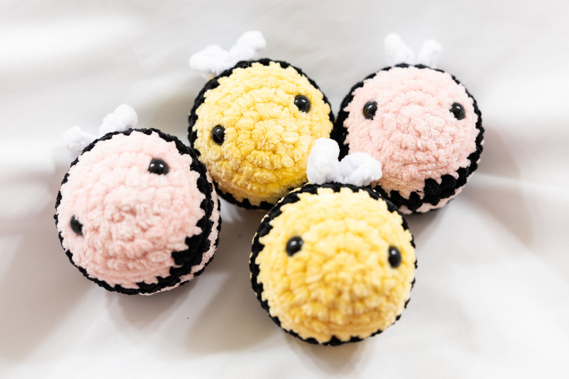 Crochet mini bumble bee plushie available in yellow and pink!