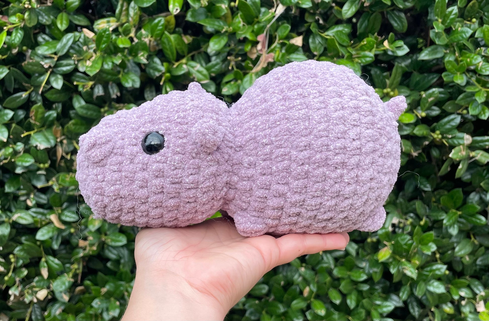 Crochet Hippo available in purple.
