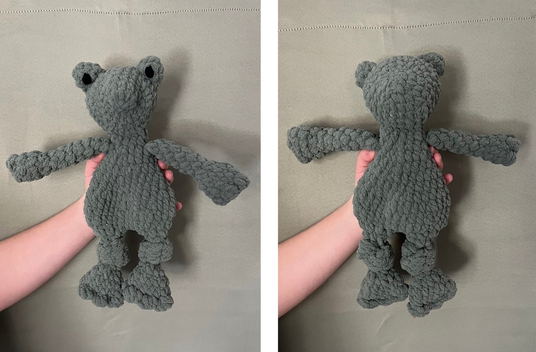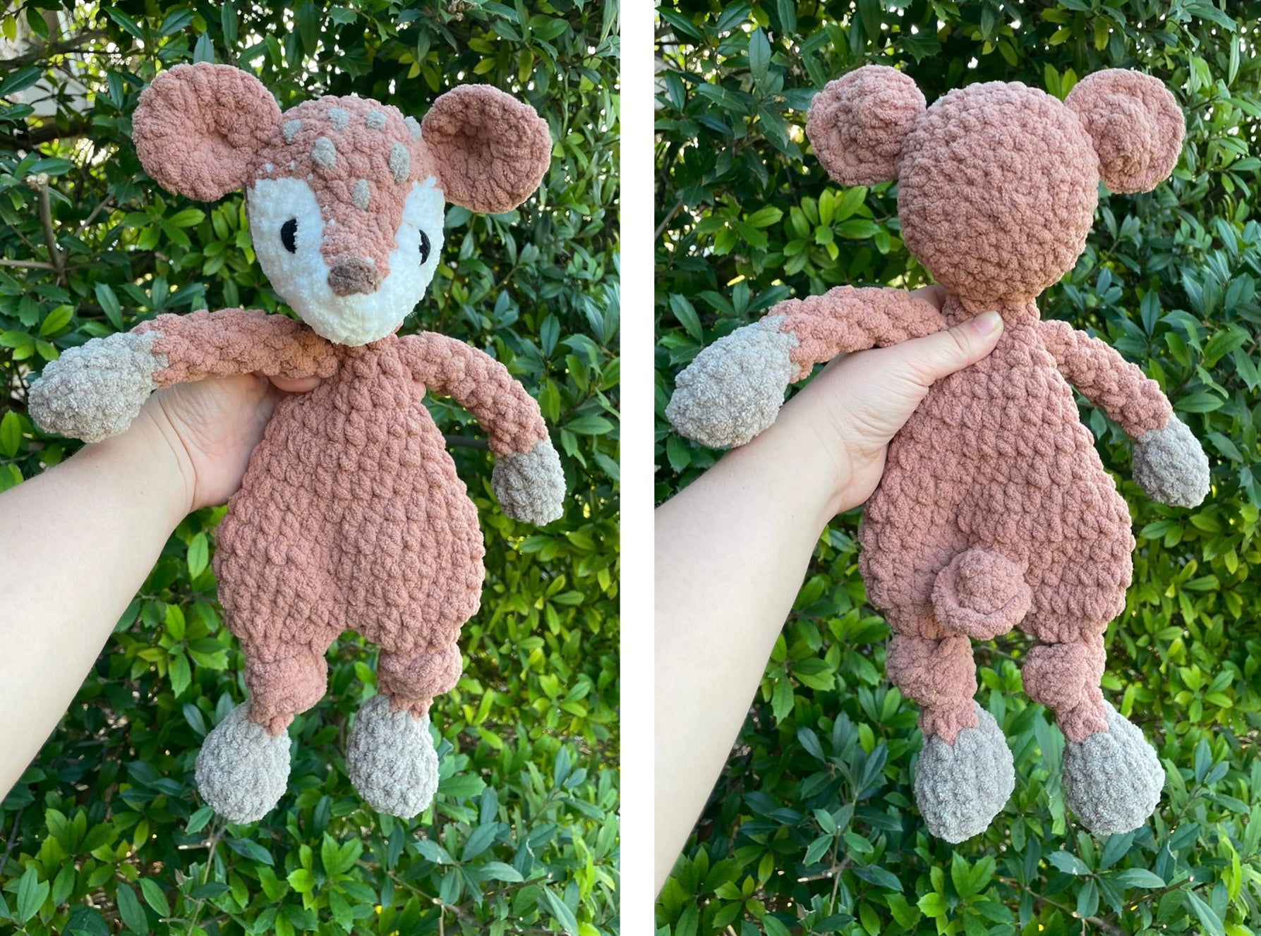 These are approximately 13 inches in length. The eyes are embroidered so the lovey is safe for all ages.