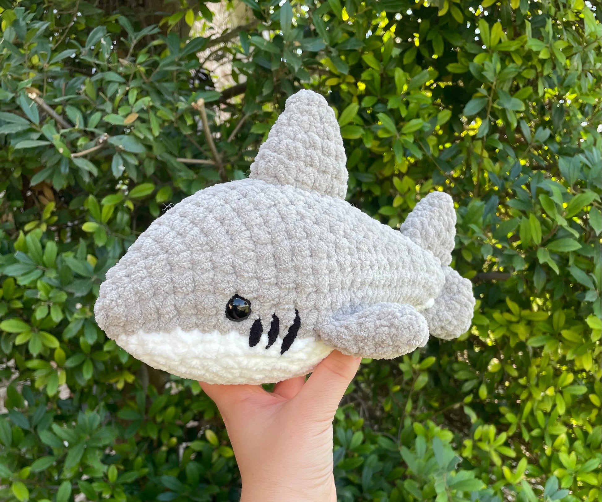 Crochet Sharks, available in multiple colors.